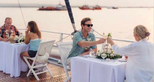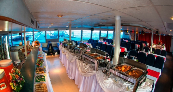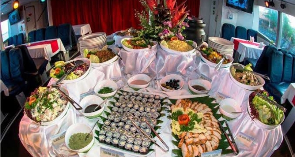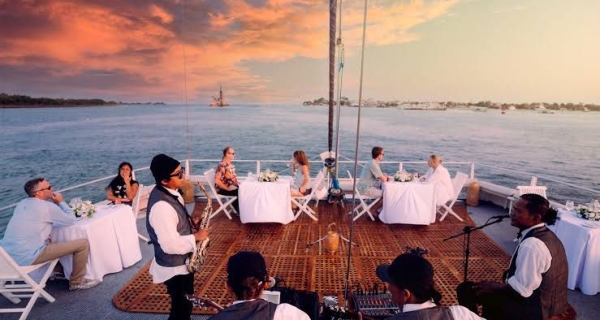 - Menikmati hidangan prasmanan internasional dengan suasana romantis di tengah laut